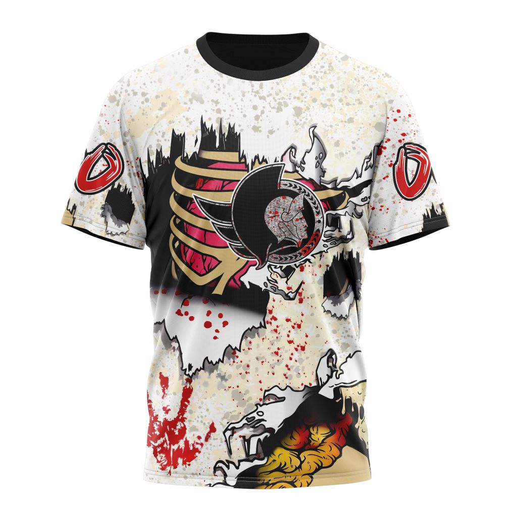 Ottawa Senators Special Zombie Style For Halloween Personalized Name And Number T-Shirt