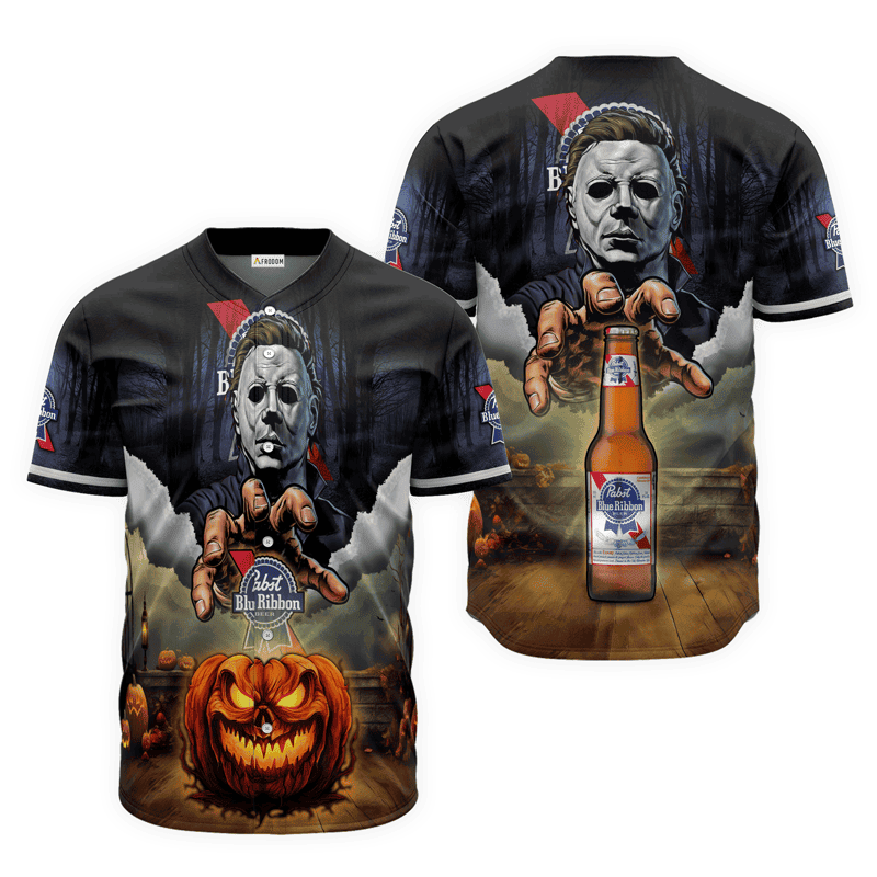 Pabst Blue Ribbon Halloween Michael Myers Baseball Jersey