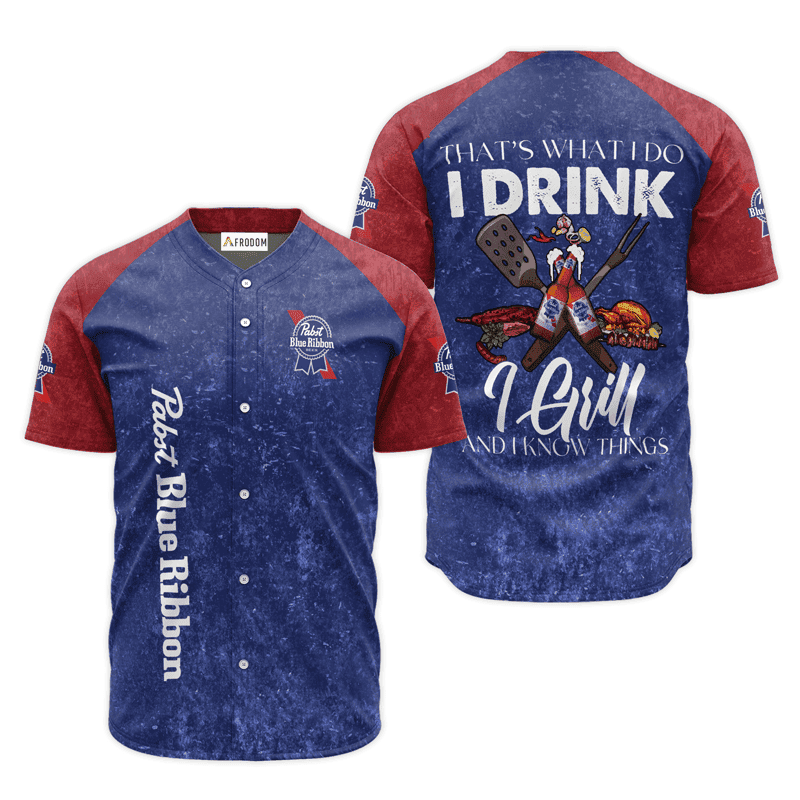 Pabst Blue Ribbon I Drink I Grill Baseball Jersey