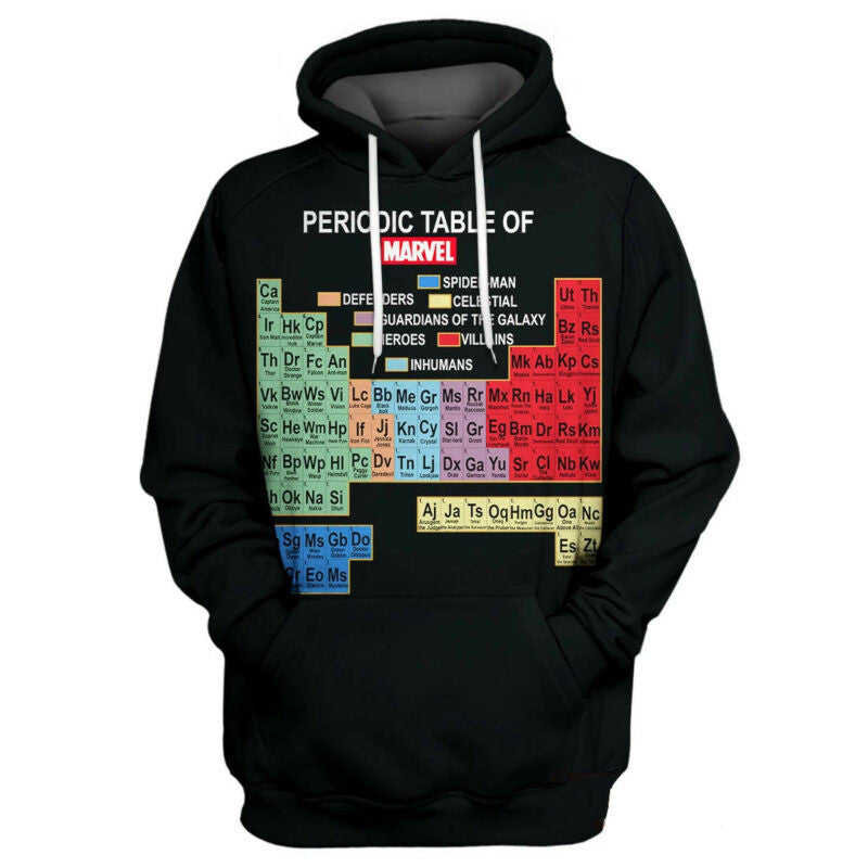 Buildercar – Periodic Table Of Marvel 3d Hoodie