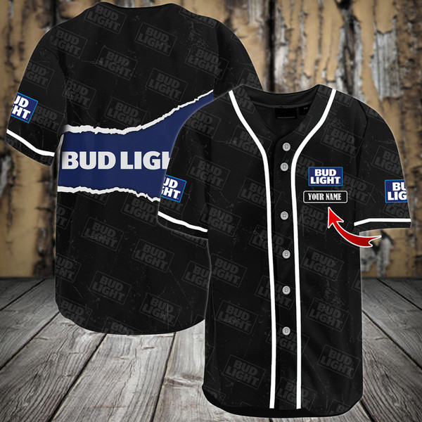 Personalized Black Bud Light Beer Seamless Baseball Jersey