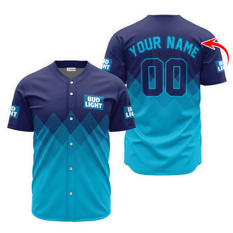 Personalized Bud Light Blue Halftone Baseball Jersey