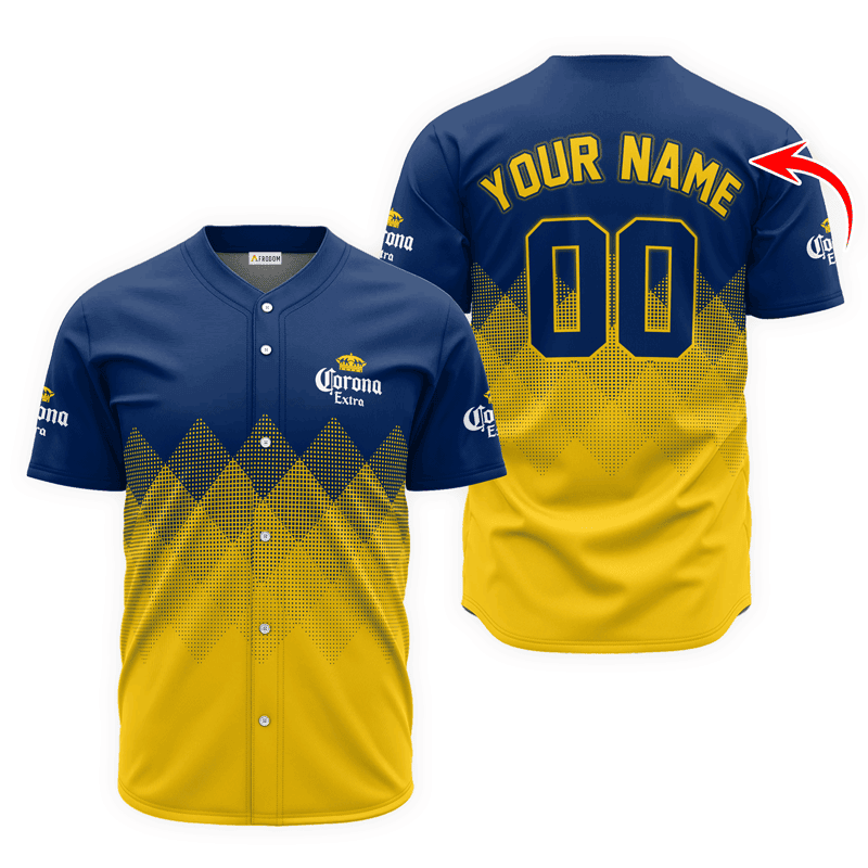 Personalized Corona Extra Yellow And Blue Halftone Baseball Jersey