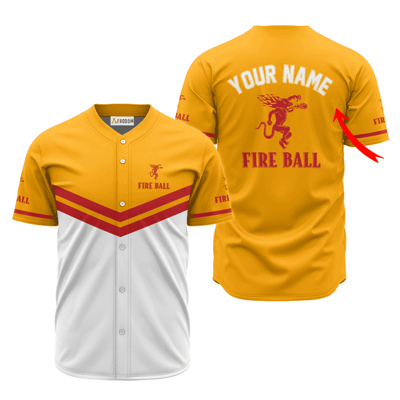 Personalized Fireball Whiskey Yellow And White Baseball Jersey