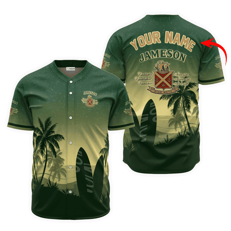Personalized Jameson Palm Tree Surfboard Baseball Jersey