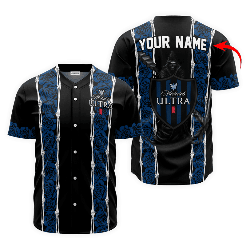 Personalized Michelob Ultra Blue Skeleton Rose Baseball Jersey