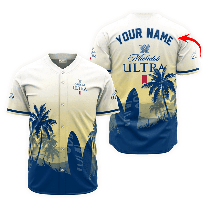 Personalized Michelob Ultra Palm Tree Surfboard Baseball Jersey