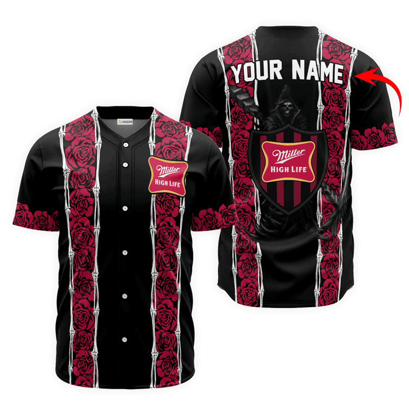 Personalized Miller High Life Pink Skeleton Rose Baseball Jersey