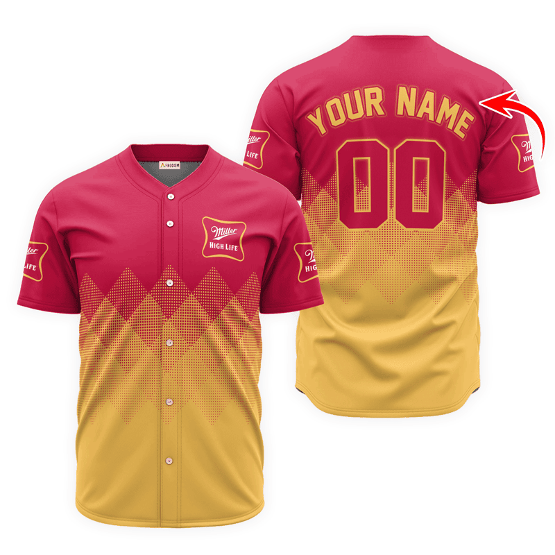 Personalized Miller High Life Yellow And Pink Halftone Baseball Jersey