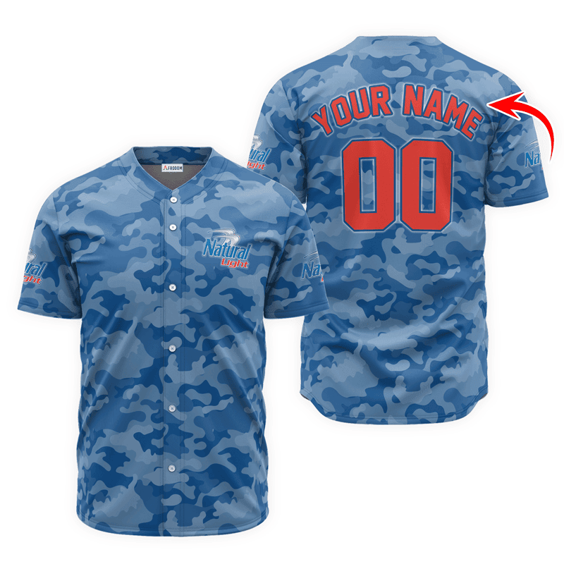 Personalized Natural Light Blue Camouflage Baseball Jersey