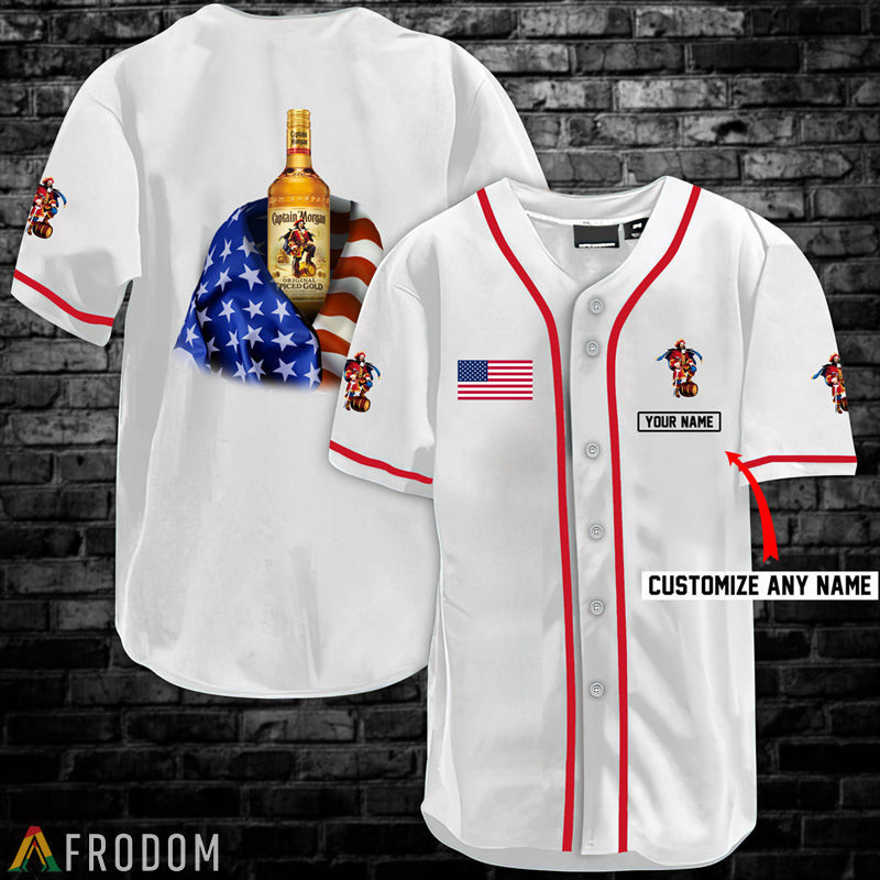 Personalized Vintage White USA Flag Captain Morgan Baseball Jersey