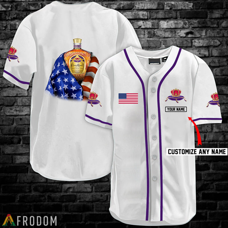 Personalized Vintage White USA Flag Crown Royal Baseball Jersey
