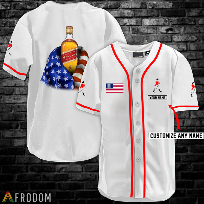 Personalized Vintage White USA Flag Johnnie Walker Baseball Jersey