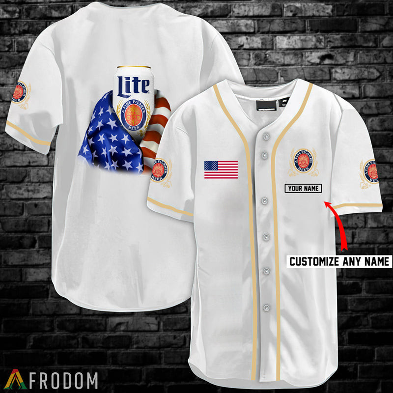 Personalized Vintage White USA Flag Miller Lite Baseball Jersey