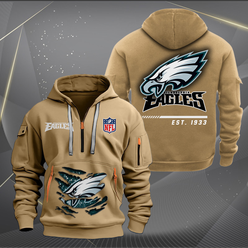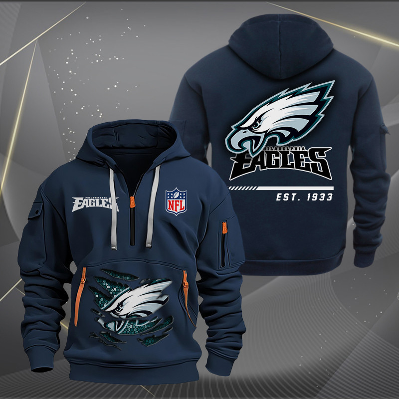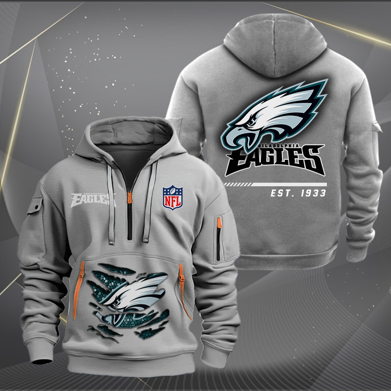 Philadelphia Eagles Monster Scratch 2 Logo NFL Quarter Zip Hoodie