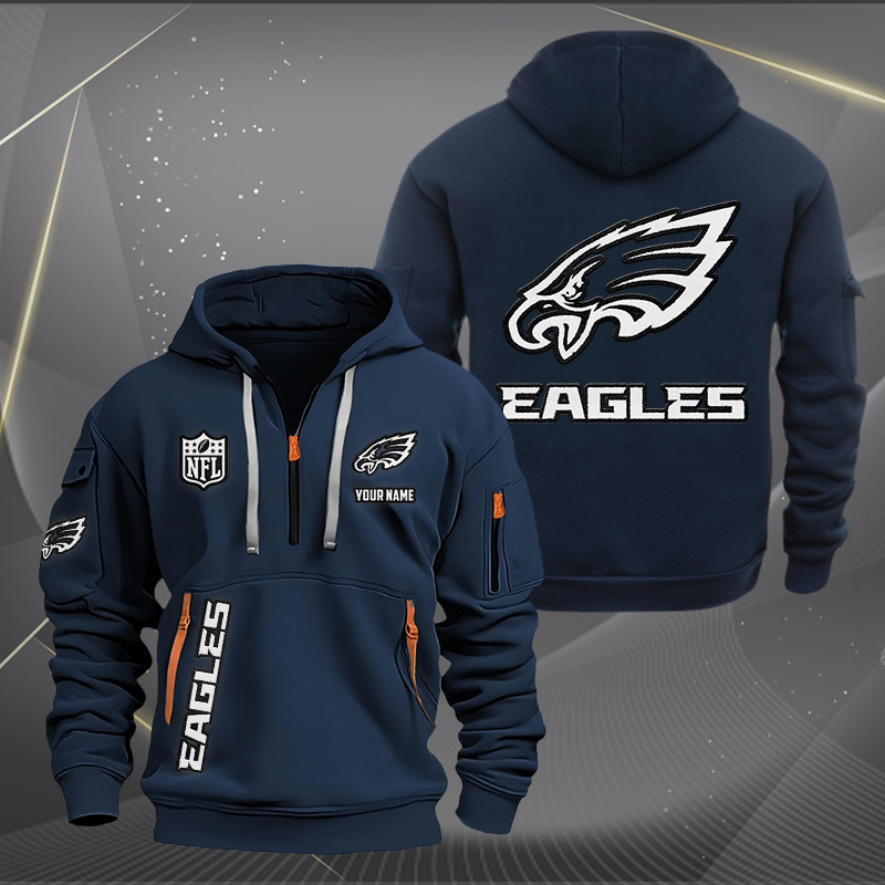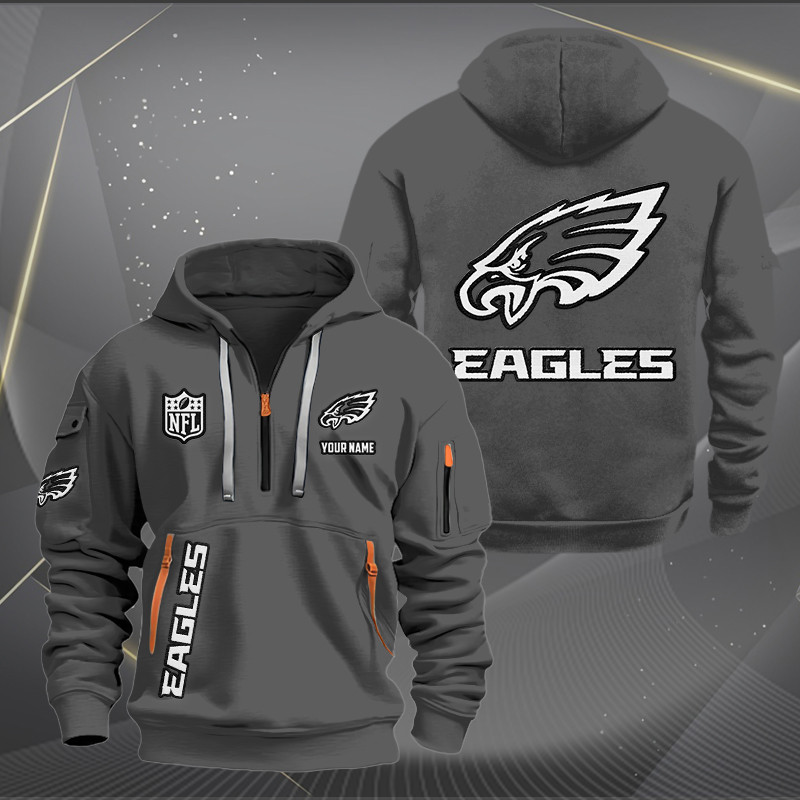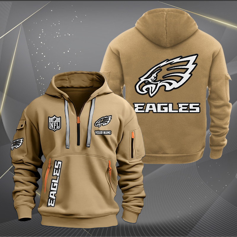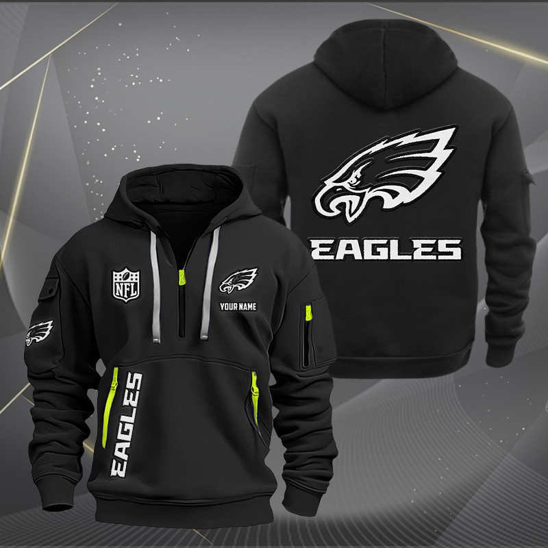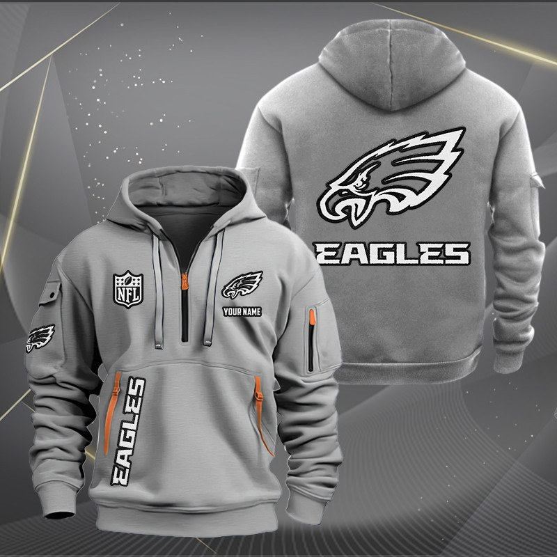 Philadelphia Eagles White Logo NFL Quarter Zip Hoodie