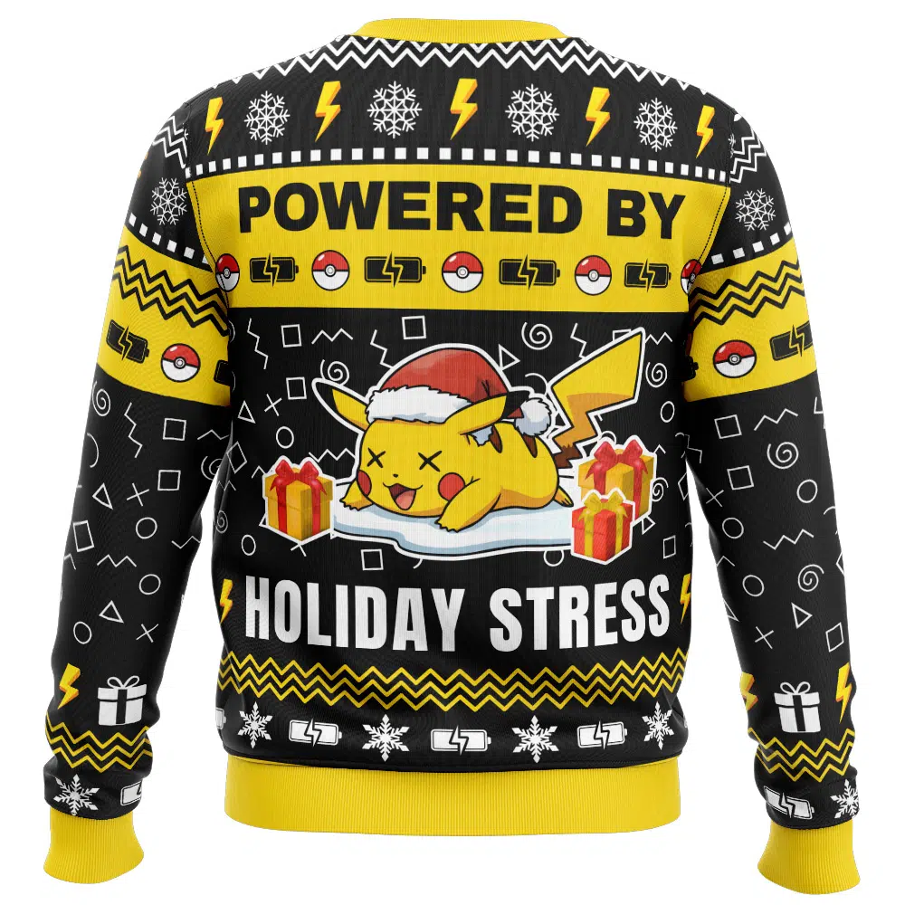 Buildercar – Pikachu Holiday Stress Pokemon Ugly Christmas Sweater Turn Heads This Holiday with Anime Ape’s Exclusive Ugly Christmas Sweater