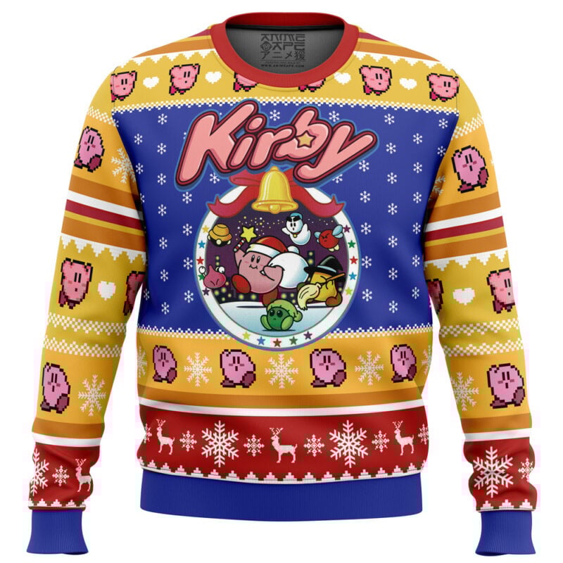 Buildercar – Pink Puff Christmas Kirby Ugly Christmas Sweater Turn Heads This Holiday with Anime Ape’s Exclusive Ugly Christmas Sweater