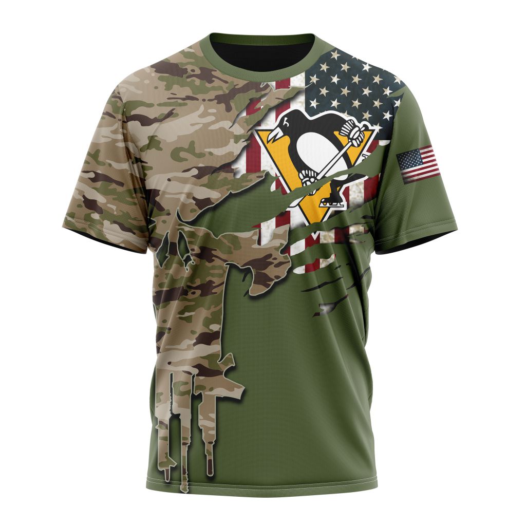Pittsburgh Penguins Special Camo Skull Design Personalized Name And Number T-Shirt