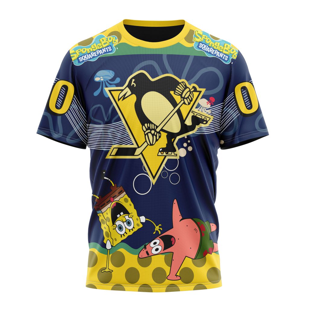 Pittsburgh Penguins With SpongeBob Personalized Name And Number T-Shirt