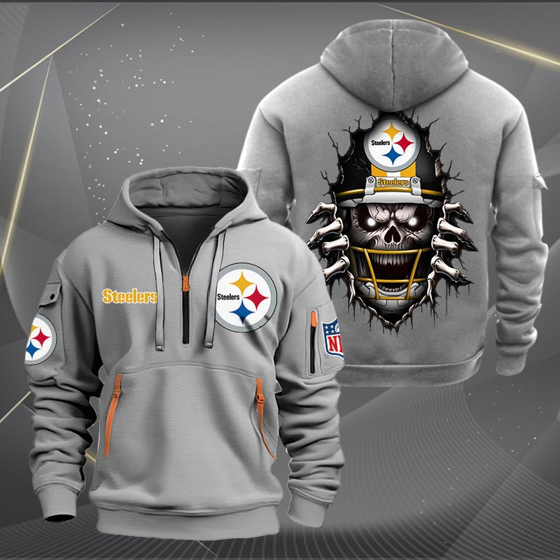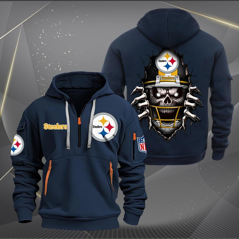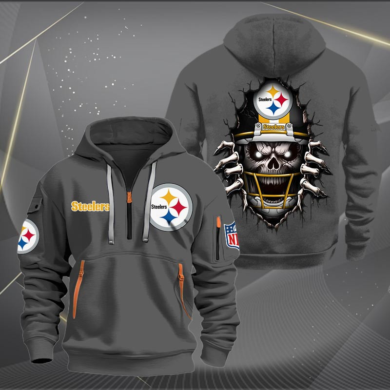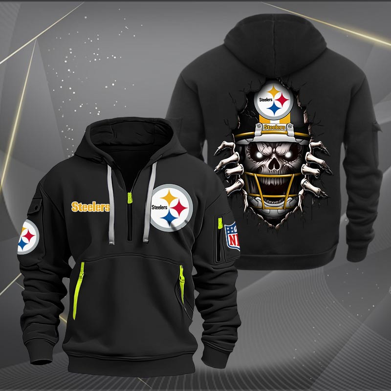 Pittsburgh Steelers Football Player Skull Quarter Zip Hoodie