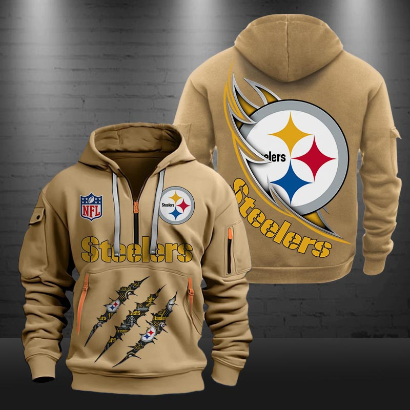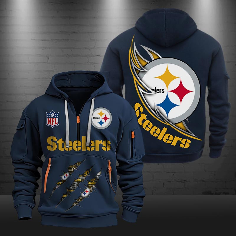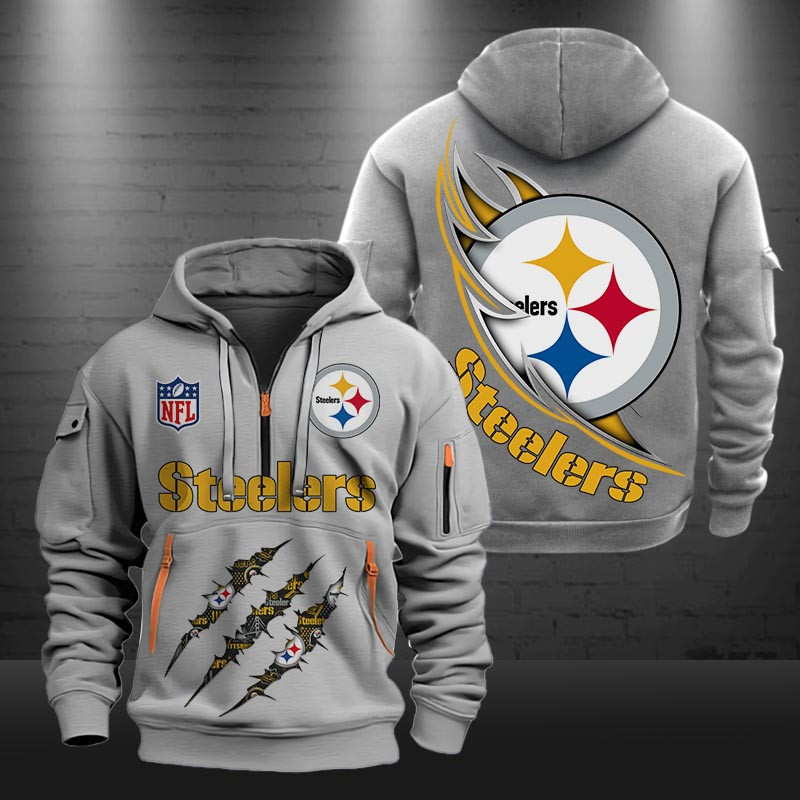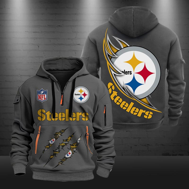 Pittsburgh Steelers Monster Scratch Logo NFL Quarter Zip Hoodie