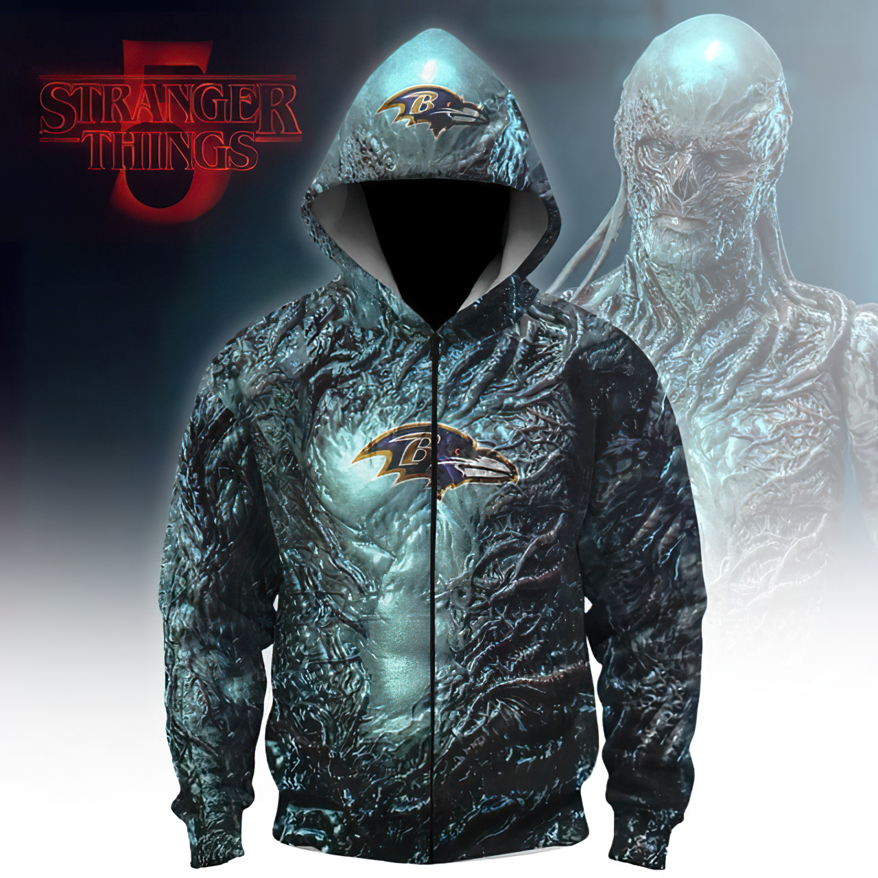 Buildercar – Premium NFL Baltimore Ravens x Stranger Things Crossover Hoodie