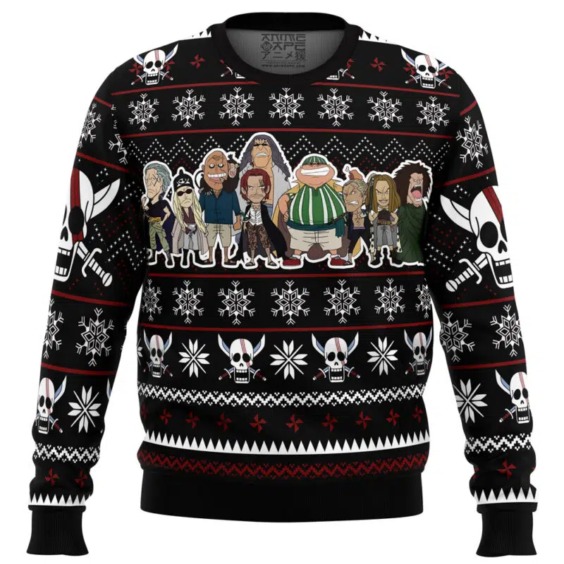 Buildercar – Red Hair Pirates One Piece Ugly Christmas Sweater Turn Heads This Holiday with Anime Ape’s Exclusive Ugly Christmas Sweater