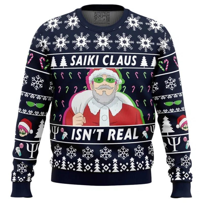Buildercar – Saiki Claus Isn’t Real The Disastrous Life of Saiki K Ugly Christmas Sweater Turn Heads This Holiday with Anime Ape’s Exclusive Ugly Christmas Sweater