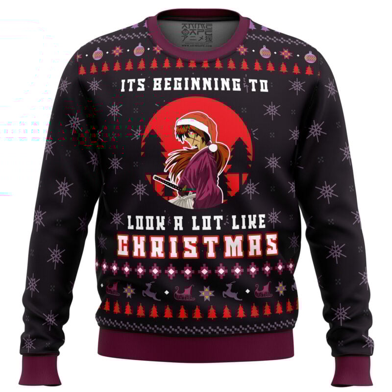 Buildercar – Samurai X Its Beginning To Look a Lot Like Christmas Ugly Christmas Sweater Turn Heads This Holiday with Anime Ape’s Exclusive Ugly Christmas Sweater