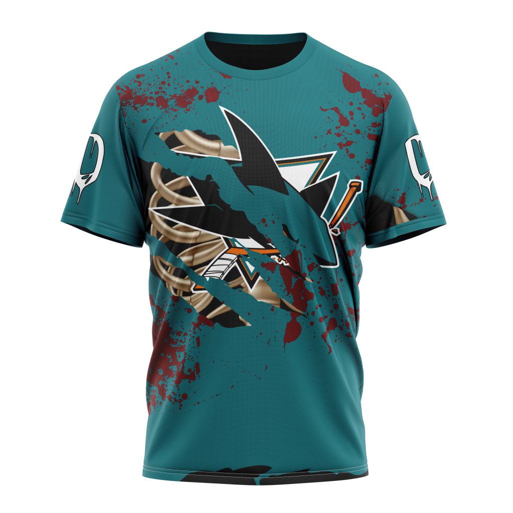 San Jose Sharks Design With Your Ribs For Halloween Personalized Name And Number T-Shirt