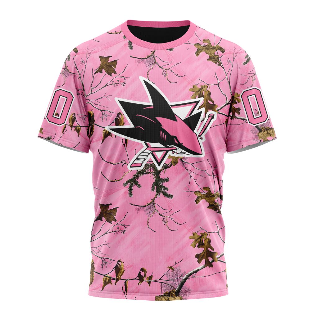 San Jose Sharks Special Realtree Pink Camouflage Design 01 Personalized Name And Number T-Shirt