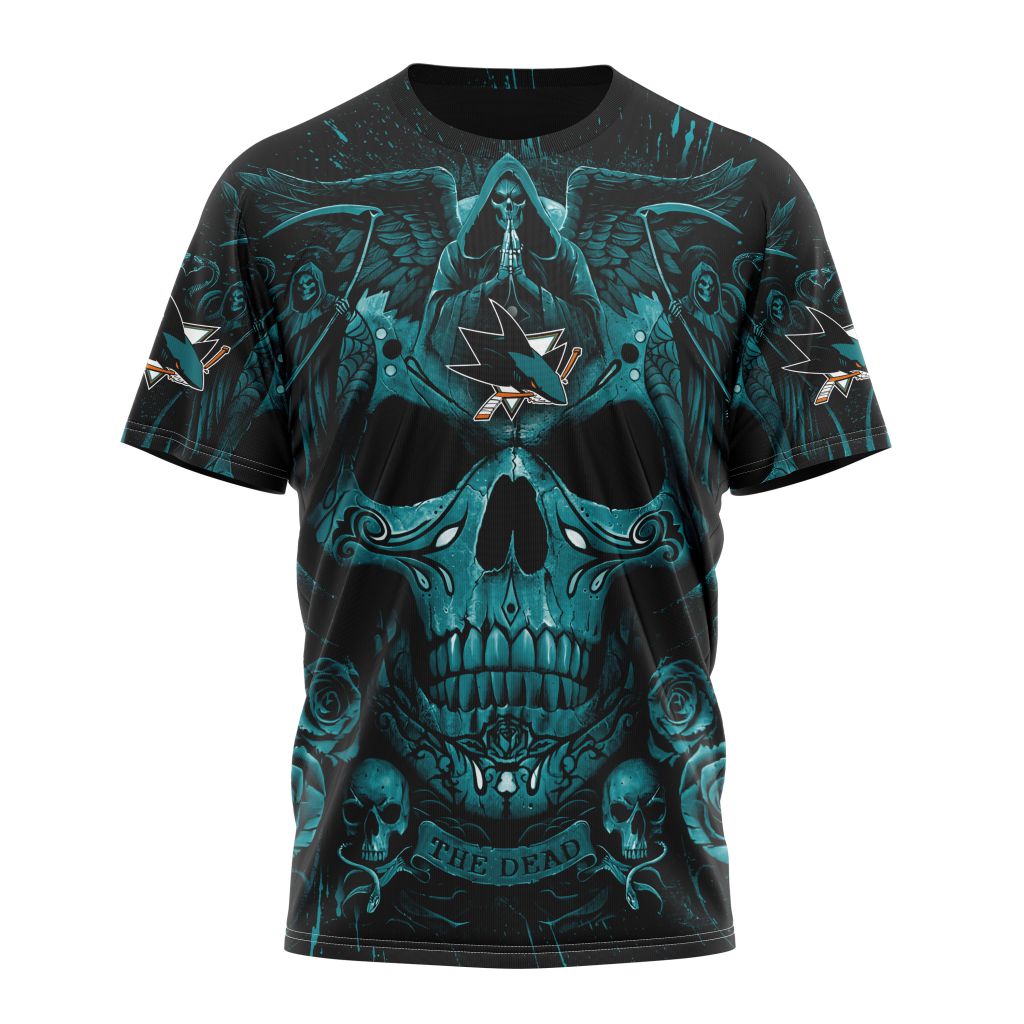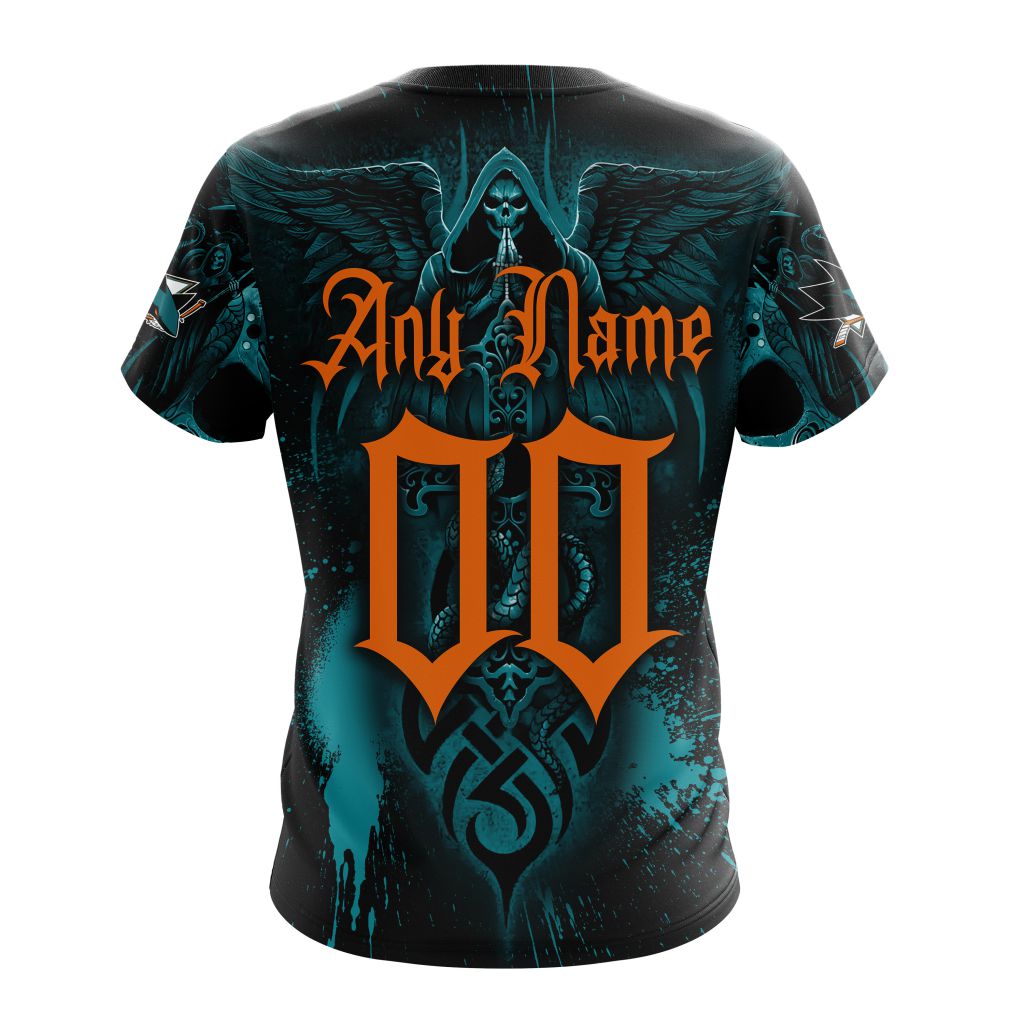 San Jose Sharks With Skull Art Personalized Name And Number T-Shirt
