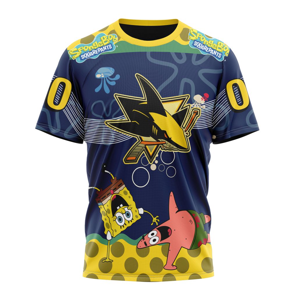 San Jose Sharks With SpongeBob Personalized Name And Number T-Shirt