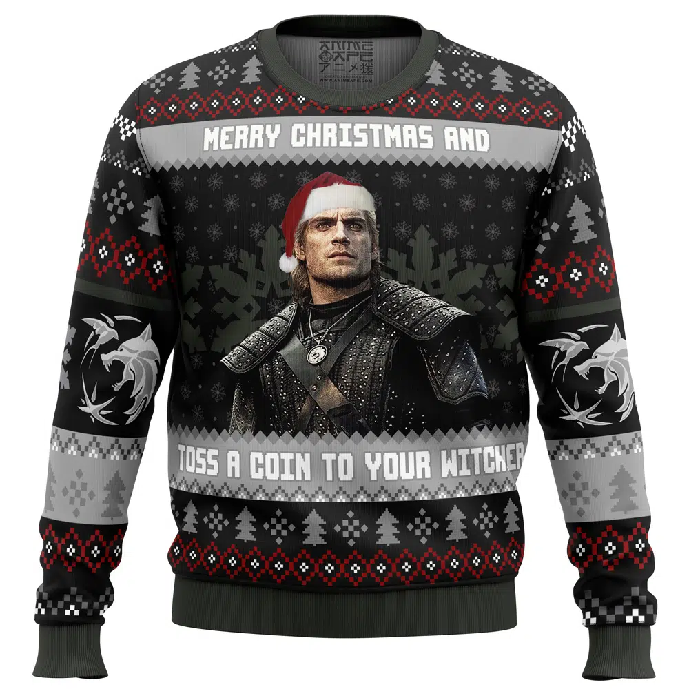 Buildercar – Santa Witcher The Witcher Ugly Christmas Sweater Turn Heads This Holiday with Anime Ape’s Exclusive Ugly Christmas Sweater