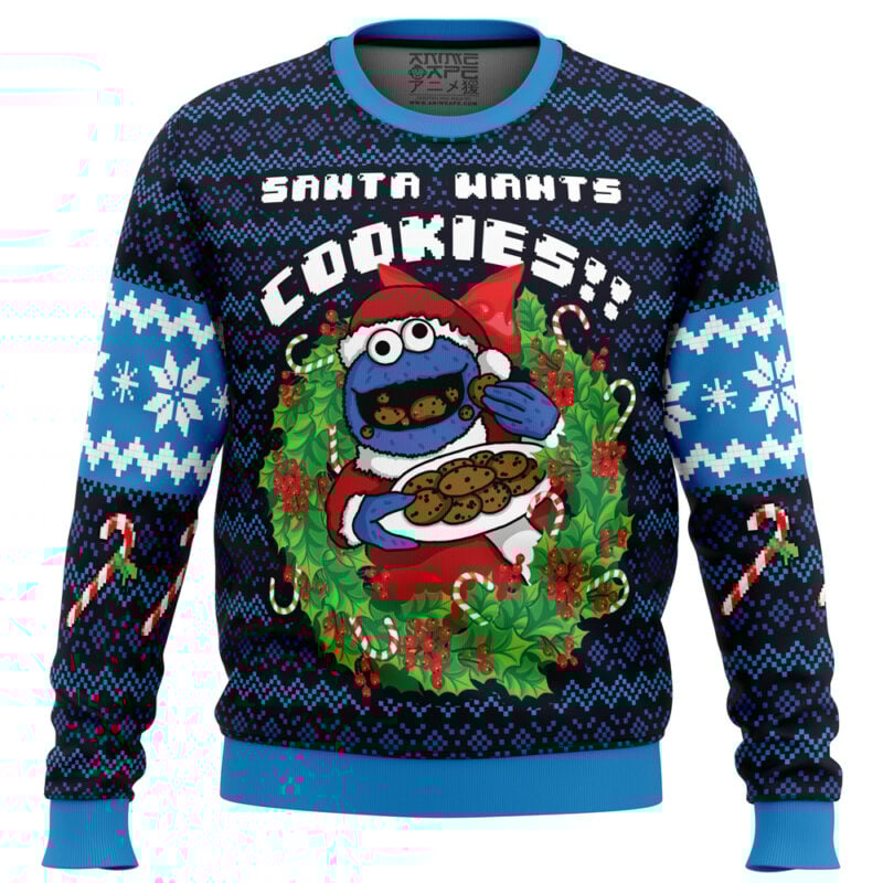 Buildercar – Santa’s Cookies Cookie Monster Ugly Christmas Sweater Turn Heads This Holiday with Anime Ape’s Exclusive Ugly Christmas Sweater