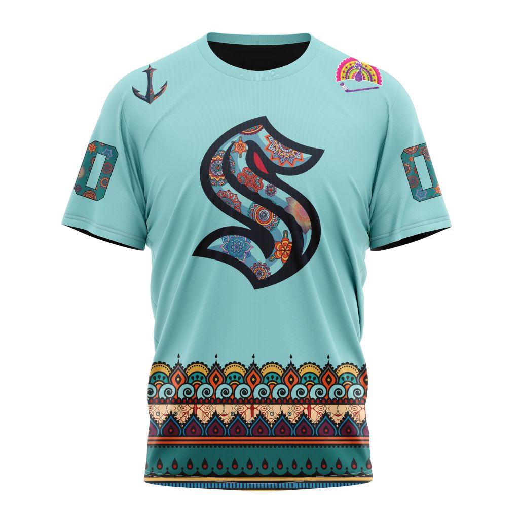 Seattle Kraken Hockey For All Diwali Festival Personalized Name And Number T-Shirt