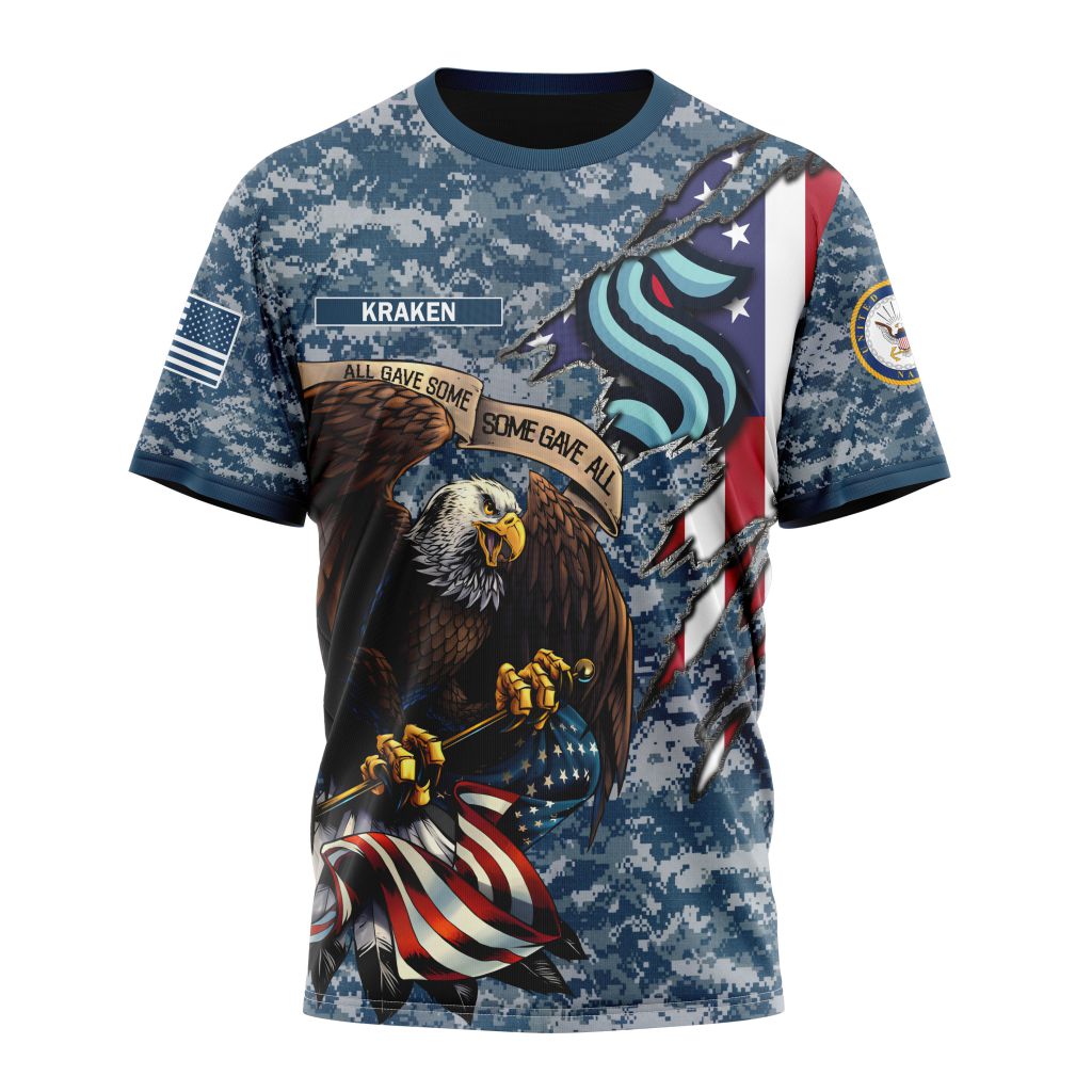 Seattle Kraken Honor US Navy Veterans Personalized Name And Number T-Shirt