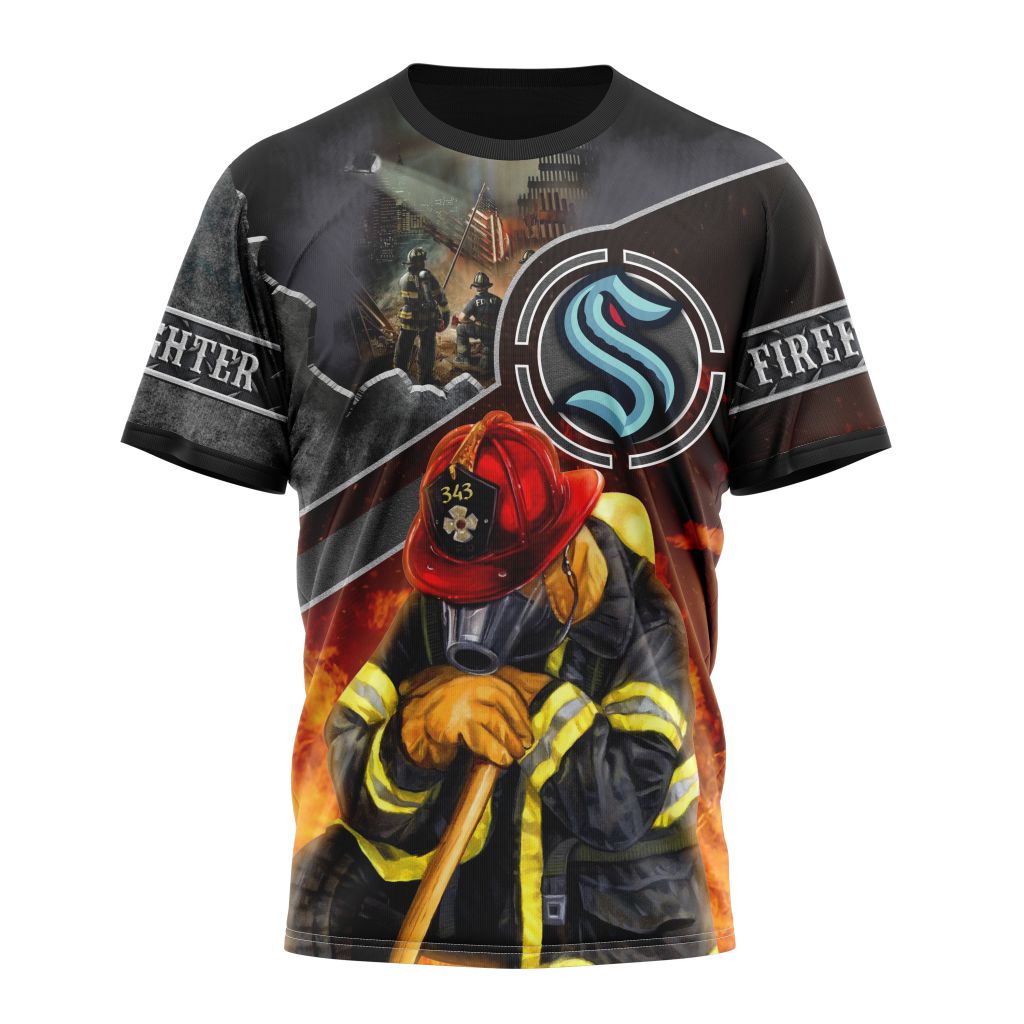 Seattle Kraken Kits To Honor FireFighter In Patriot Day We Will Never Forget Personalized Name And Number T-Shirt