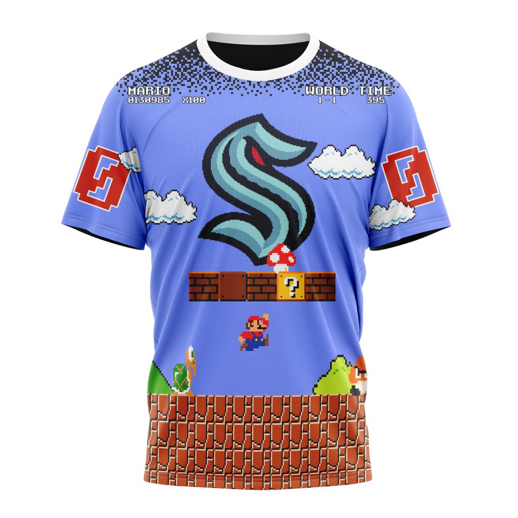 Seattle Kraken Special Kits With Super Mario Game Design Personalized Name And Number T-Shirt