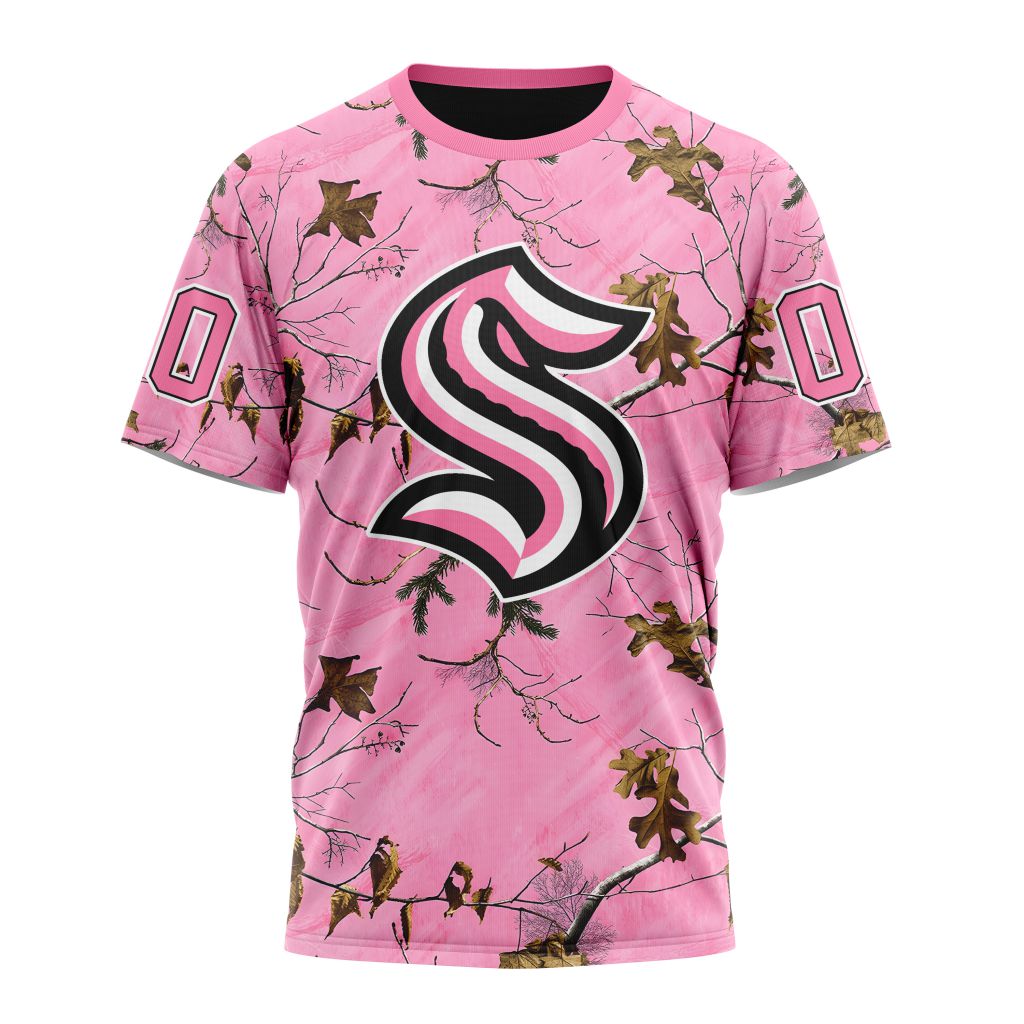 Seattle Kraken Special Realtree Pink Camouflage Design 01 Personalized Name And Number T-Shirt