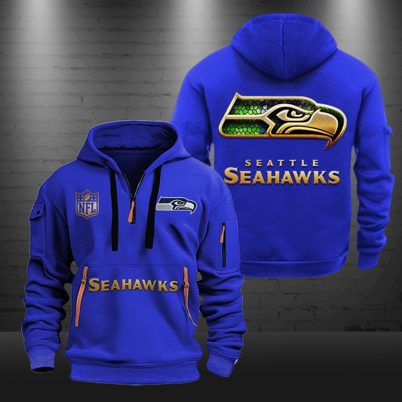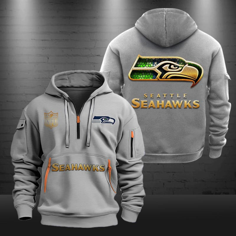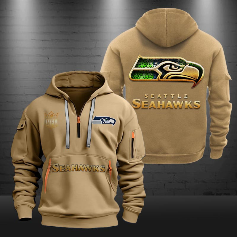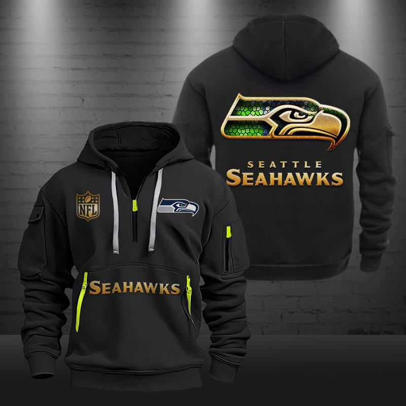 Seattle Seahawks Golden Logo NFL Quarter Zip Hoodie