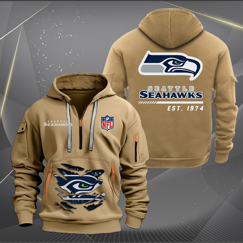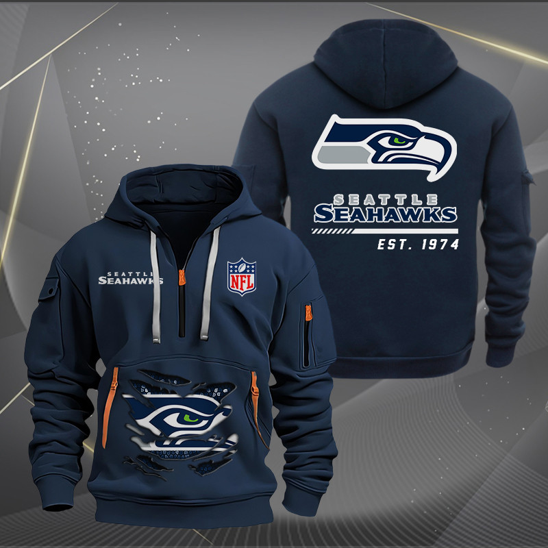 Seattle Seahawks Monster Scratch 2 Logo NFL Quarter Zip Hoodie