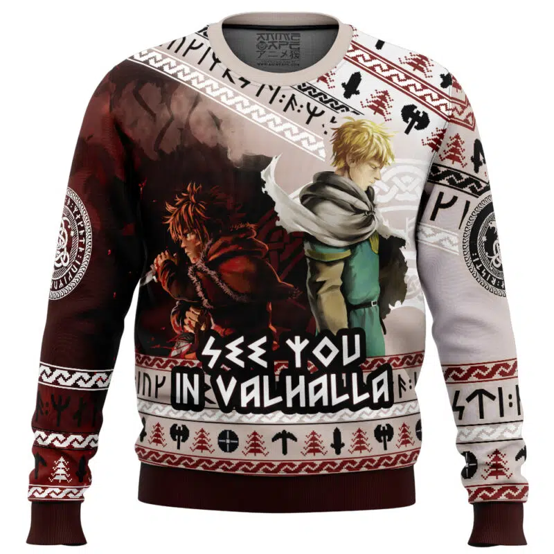 Buildercar – See You In Valhalla Vinland Saga Ugly Christmas Sweater Turn Heads This Holiday with Anime Ape’s Exclusive Ugly Christmas Sweater