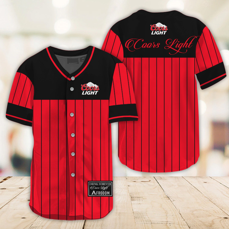 Sleek Black Vertical Striped Coors Light Baseball Jersey