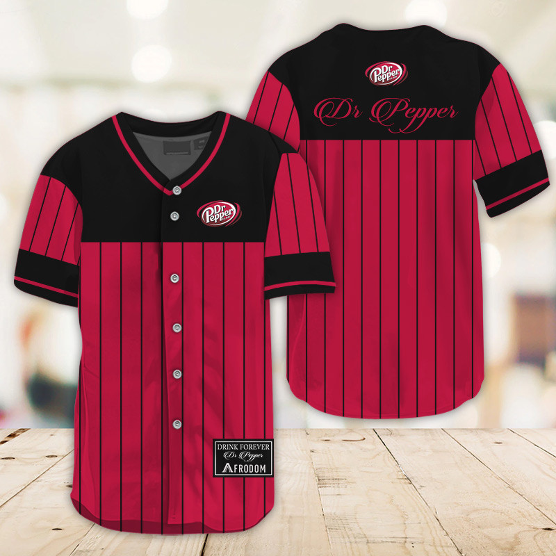 Sleek Black Vertical Striped Dr Pepper Baseball Jersey