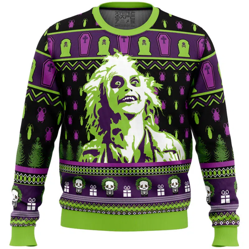 Buildercar – Smile Beetlejuice Ugly Christmas Sweater Turn Heads This Holiday with Anime Ape’s Exclusive Ugly Christmas Sweater