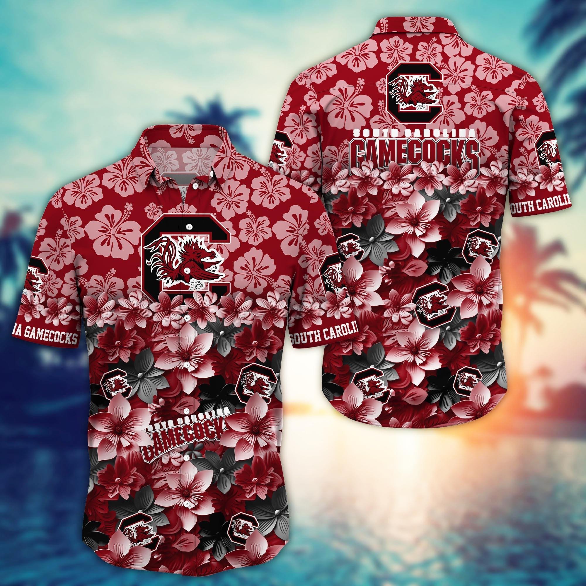 South Carolina Gamecocks White Floral Hawaiian Shirt
