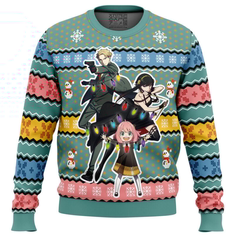 Buildercar – Spy Xmas Family Spy x Family Ugly Christmas Sweater Turn Heads This Holiday with Anime Ape’s Exclusive Ugly Christmas Sweater