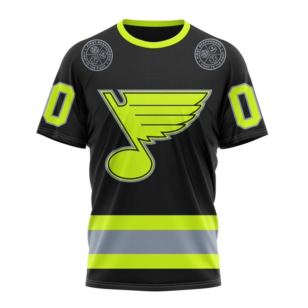 St. Louis Blues Unisex Kits With FireFighter Uniforms Color Personalized Name And Number T-Shirt